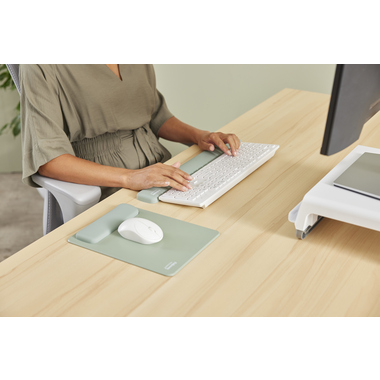 Patentierte HEX-Cushion-Technology™ bietet gleichmäßige Unterstützung und außergewöhnlichen Komfort beim Arbeiten mit der Maus. Die Soft-Touch-Handgelenkauflage mit staubabweisender Beschichtung sorgt für ein hochwertiges Finish und ein angenehmes Mausgefühl. Integrierter Microban®-Schutz hemmt das Wachstum von Bakterien und bietet rund um die Uhr zusätzlichen Produktschutz. Tragbares, leichtes und kompaktes Design - ideal für hybrides Arbeiten. 100 % recycelbar über das Fellowes Rücknahmeprogramm.